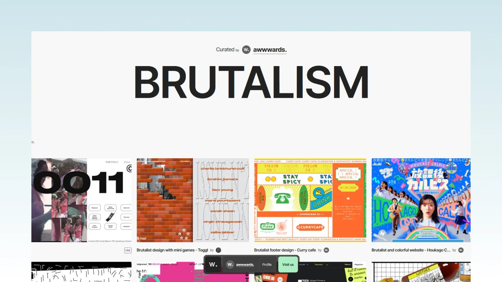 Awwwards is a well-known web design inspiration and award platform. The collection specifically gathers Brutalist style web design works for designers to gain inspiration. This collection is more excellent in design sense and interactive animation aspects.
